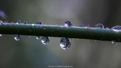 Telles de mini boules de cristal, l'eau qui a perlé sur les végétaux donne vie à la matière, révélant leurs textures et renforçant les couleurs.